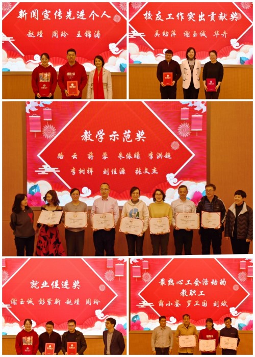 联欢会现场节目形式多样、内容丰富、精彩纷呈,或欢快、或温馨、或活泼,展现了学院教职工多才多艺的一面,以及对教育事业的热爱和新年的美好祝福。由经济贸易系与公共管理系联合带来的合唱《好一朵美丽的茉莉花》拉开了本次迎新春联欢会的序章;工商管理学系老师们的歌舞表演《这世界那么多人》旋律优美、舞姿动人,在寒冷的冬季传达出无限的温暖与感动;药事管理系张乐乐老师带来的歌曲《贝加尔湖畔》柔情似水、温暖美好,让现场观众沉醉其中;院办与实验中心老师带来的朗诵《我爱上班》,用幽默诙谐的语言和活泼率真的表演,展现了对工作的无比热爱和对未来的热切向往;学工团队带来的舞蹈串烧《E人总动员》,用动感的旋律、活泼的舞姿、近距离的互动,为活动现场带来无尽的欢乐与美好的祝福。学院领导班子成员带来的演唱《我和我的祖国》满怀对祖国的热爱与祝福,凝聚力量、振奋人心,为本次联欢会注入了满满的活力。活动最后,为表彰典型,鼓励先进,学院颁发2023年度A片网站 教职工荣誉奖项,以此为契机鼓舞全体教职工在新的一年再接再厉,勇往直前,齐心协力共同推动学院发展再上新台阶。