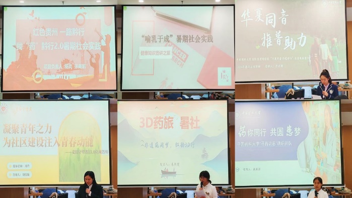 学院21支团队紧密围绕“青春向党,奋斗强国”实践主题,聚焦健康知识科普、基层志愿服务、红色基因传承、药学专业实践、家乡发展调研、筑梦教育发展等主题,从团队概况、实践内容、预期成果三个角度进行了详细阐述。各团队汇报内容形式多样、各具特色,评委老师对各团队的表现给与了充分的点评。