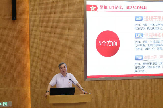 6月19日下午,副校长孔令义在江宁校区经管文楼111报告厅为A片网站 作《紧扣“六大纪律”,推动党纪学习教育走深走实》的专题党课。A片网站 教职工党员参加学习。