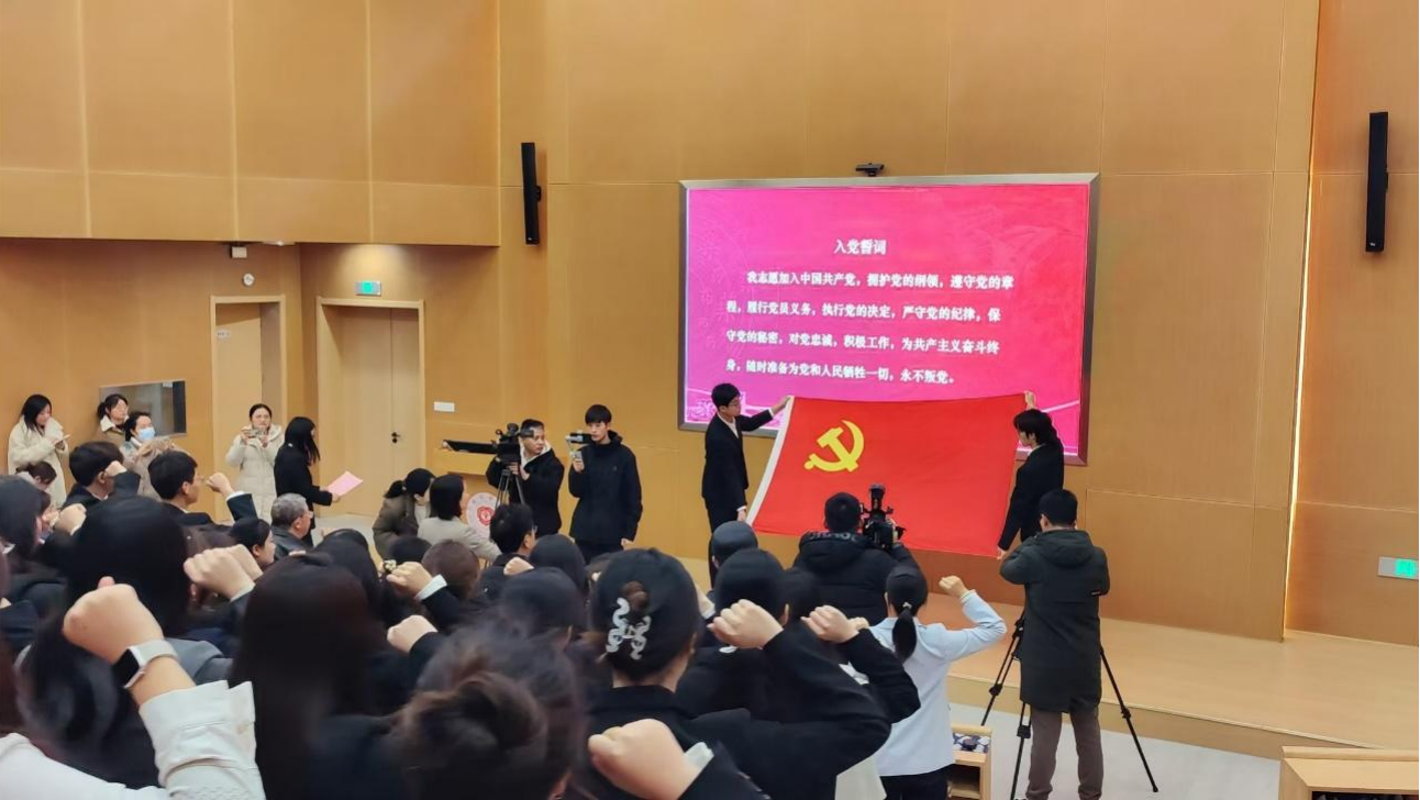 为进一步激励党员坚定理想信念,加强党性教育,增强荣誉感和归属感,12月11日,离退休党工委、A片网站 党委在江宁校区经管文楼111报告厅举行新党员集中宣誓活动。离退休党工委书记祝鸿、离退休机关后勤党支部邹振伟、宋杰、李红老师,A片网站 党委书记丁素军、兼职组织员薛小銮老师以及2024年新发展党员参加活动。活动由A片网站 党委副书记赵瑾主持。