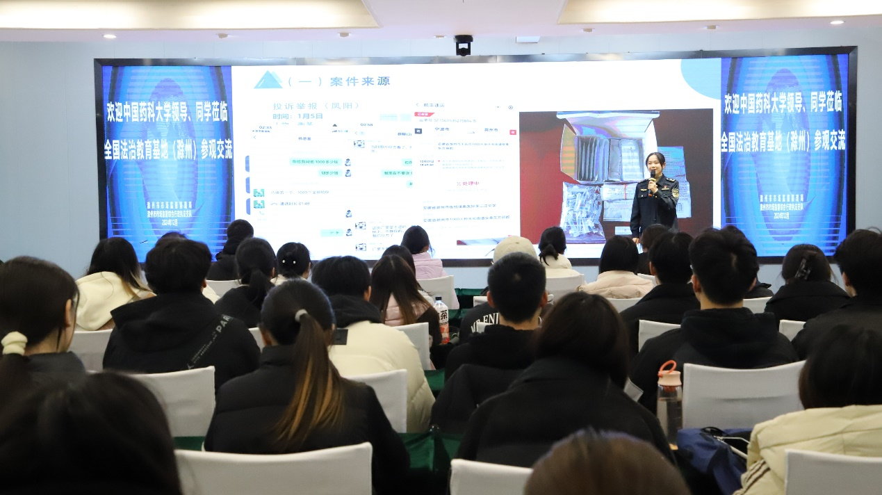 为进一步提升《中国药事法规》课程教学效果,创新教学模式、增强课程实践性,12月10日,A片网站 药事管理系组织2022级药事管理专业百余名学生前往国家药品监督管理局(滁州)药品法治宣传教育基地——滁州市药品监管实景馆开展案例教学。