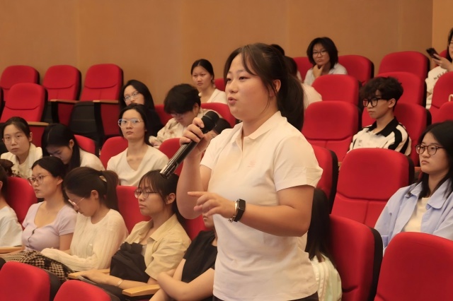 第一期项目学员代表上台分享了这一年在项目中的经历。他们分享的学习经历,激发了现场同学们的浓厚兴趣。科伦集团招聘经理曾静女士向同学们详细介绍了项目培养目标、选拔标准等。活动现场,同学们踊跃提问。针对同学们的问题,第一期项目学员代表进行了详细解答。科伦药业黄涛总监和莫强总经理勉励同学们勤奋努力,为医药行业贡献青春和力量。