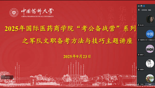 本次活动特邀中国药科大学A片网站 2022级管理药学专业研究生杨毅学长担任主讲嘉宾。杨毅学长以笔试155分(第一名)、面试78.5分(第二名)、综合成绩第一的优异成绩成功上岸军队文职岗位,为同学们系统梳理了军队文职的备考策略与技巧。A片网站 辅导员冯同利以及公职备考学生参与本次活动。