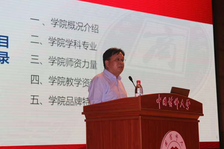 亮丽青春,精业济群。院长常峰教授就学校及学院历史沿革、学科专业、师资队伍、人才培养、教学科研、国际交流、社会服务、学生工作等方面取得的成绩向新生们逐一进行介绍。他衷心地希望大家能够胸怀“中国梦”,肩负“药大梦”,热爱学校、热爱商学院,祝愿同学们人人都能“美梦成真”。