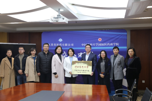 最后,丁素军书记与陈冬宁总经理共同为中国药科大学学院毕业生就业基地揭牌。