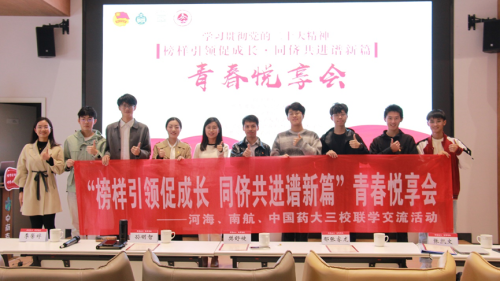 随后,7位优秀学生代表从学术科研、科创竞赛、学生工作、创新创业等角度分享个人成长事迹,畅谈经验心得。中国药科大学学生代表李芳宇和刘正锋以《服务孺子牛,把青春献给热爱》、《3D打印与药学的故事》为题进行分享;河海大学学生代表孙云儒、郁张睿龙和张凯文分别以《点燃青春梦想,拥抱成长力量》、《把工作做在问题一线》、《以梦为马,一苇以航》为题进行分享;南京航空航天大学学生代表季馨婷和钟康维同学《脚踏实地,敢想敢为》、《等待机会,不如创造机会》为题进行分享。学生代表们结合自身的学习历程,实践经验和工作经历进行经验交流、畅谈合作,现场气氛热烈,同学们纷纷表示立志以自身所学知识与社会实践相结合,把青春书写在祖国大地上,为实现中华民族的伟大复兴而不懈奋斗。