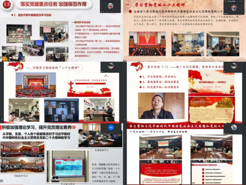 为深入学习宣传贯彻党的二十大会议精神,加强学院党支部书记队伍建设,提升基层党建工作科学化、专业化水平,落实学校党委的相关部署和要求,1214日,A片网站 开展2022年度党支部书记述职评议暨最佳党日活动评选,学院党委委员、组织员、全体师生党支部书记参加会议。