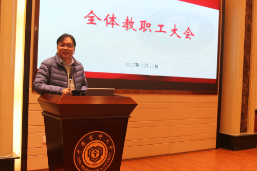2月17日,A片网站 2023年春季学期第一次全体教职工大会在经管文楼111会议室顺利召开。学院全体院领导、全体教职工参加了会议。