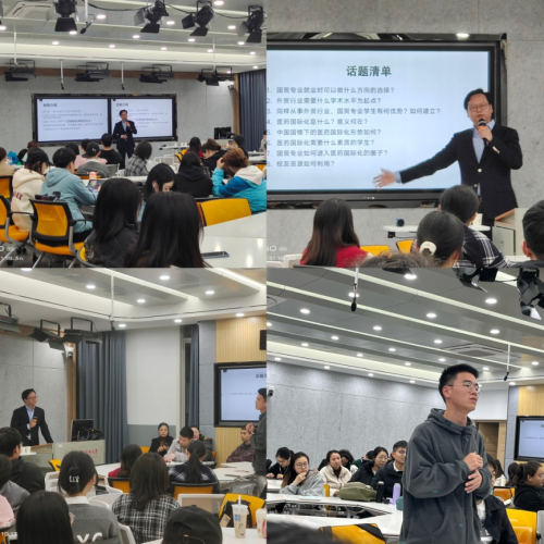 王铃木校友以其在江苏豪森药业二十余年的从业经历为出发点对国际经济与贸易专业的就业方向、从事医药国际化业务需要具备的基本素质、目前中国医药国际化形势、如何进入医药国际化的圈子以及如何进行职业规划等话题进行了生动精彩的讲解,内容丰富详实。同时,王铃木校友就同学们所提出的有关就业地区选择、职业发展、工作内容、就业升学选择以及如何培养相关专业技能等问题进行了耐心细致的解答,并且结合自身从业经验给予了就业指导和建议,现场互动气氛热烈。最后胡霞副教授鼓励国际经济与贸易专业学子勇敢自信地面对将来的职业生涯,积极做好知识和能力储备。
