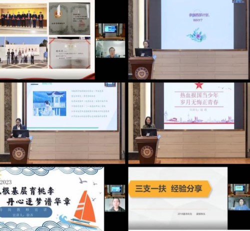 随后,六位嘉宾分别围绕各自的基层项目进行经验分享。现连云港市灌云县四队镇党政办公室副主任、后腰村党总支副书记陈秋霖主要从江苏省委选调生政策介绍、报考条件和工作日常三个方面进行介绍,和大家分享了自己在报考准备、驻村工作以及在县委组织部的工作经历。西部计划国家项目志愿者曲英娜向我们分享了她参与西部计划的初衷、日常工作以及收获,她号召大家将个人的需要和国家需要相结合,用一年不长的时间,做一生难忘的事情。江苏大学生乡村振兴计划志愿者、服务于汤山街道的何思昫为大家解读政策,从什么是两个计划出发,详细解读了乡村振兴计划的选拔政策及其优势。青海省海西州乌兰县人社局办公室干事孟根珠乐首先介绍了“三支一扶”计划的政策与福利内容,详细介绍考试报名要求、报考流程、考试内容,以及在基层工作的感悟与工作内容,极大激发了同学们建设家乡的热情。特岗教师徐齐以“扎根基层育桃李,丹心逐梦谱华章”为题,分享了特岗教师的报考要求、职业介绍、报考注意事项等,鼓励同学们提前准备。应征入伍的赵莉首先介绍了个人工作经历与军营生活,讲述军营生活对她产生的深刻影响,并详细介绍应征入伍的优待政策、发展途径、经济互助和入伍流程,为有军装梦想的同学们指明就业方向。