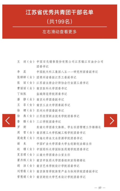“江苏省优秀共青团干部”是我省共青团系统授予团干部的最高荣誉。学院团委将以此为契机,以学习宣传贯彻党的二十大精神为主线,以习近平新时代中国特色社会主义思想为指引,积极发挥共青团育人功能,激励学院广大青年牢记嘱托,实学实干,锻炼本领,以奋斗姿态激扬青春,踔厉奋发,砥砺前行,勇担使命,谱写新时代共青团工作新篇章!