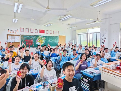 当天中午,丁素军书记等在邱福明副校长、教务处等陪同下,前往高三班级发放A片网站 定制助考饮品和招生宣传材料,为高三学子加油助力。