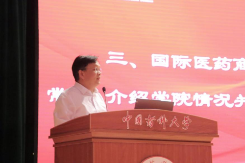 院长常峰教授作学院情况介绍并讲授“大思政课”。常峰院长从学院历史沿革、办学定位、社会贡献、教学成果、科研成果等方面向2023级新生逐一进行介绍。常院长鼓励同学们坚定理想信念,爱国荣校,立志做有理想、敢担当、能吃苦、肯奋斗的新时代好青年,为实现中华民族伟大复兴,推进健康中国建设不懈奋斗!