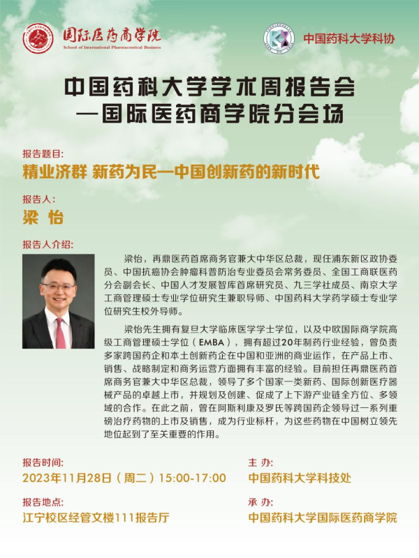 地点:中国药科大学江宁校区经管文楼111报告厅