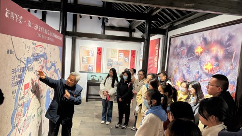 首先,A片网站 师生前往南京市江宁区横溪街道 “新四军在江宁专题展”红色教育基地沉浸式学习。退休教师党员刘维保从新四军第一支队挺近衡山村的革命历史讲起,通过一件件事物、一张张图片、一幅幅史料,勉励同学们弘扬前辈们艰苦奋斗、拼搏进取的革命精神,传承衡山红色基因,争当新时代好青年。